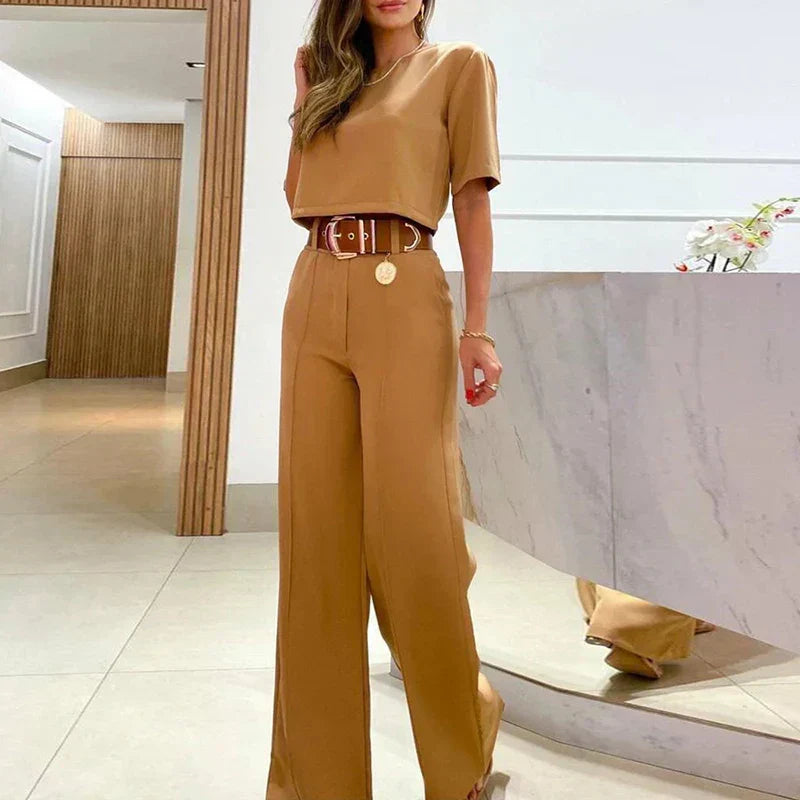 Plongez dans la saison ensoleillée avec notre ensemble deux pièces élégant pour femme. Ce look allie style et confort, vous permettant de briller lors de toutes vos aventures, des matinées ensoleillées aux soirées fraîches. Élégant et décontracté, cet ensemble est l'ajout parfait à votre garde-robe de printemps et d'été.