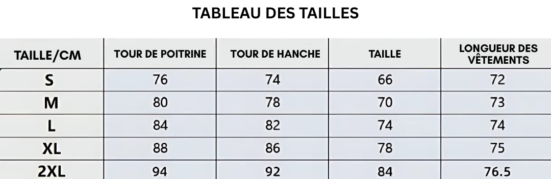 Disponible en plusieurs tailles pour convenir à toutes les morphologies